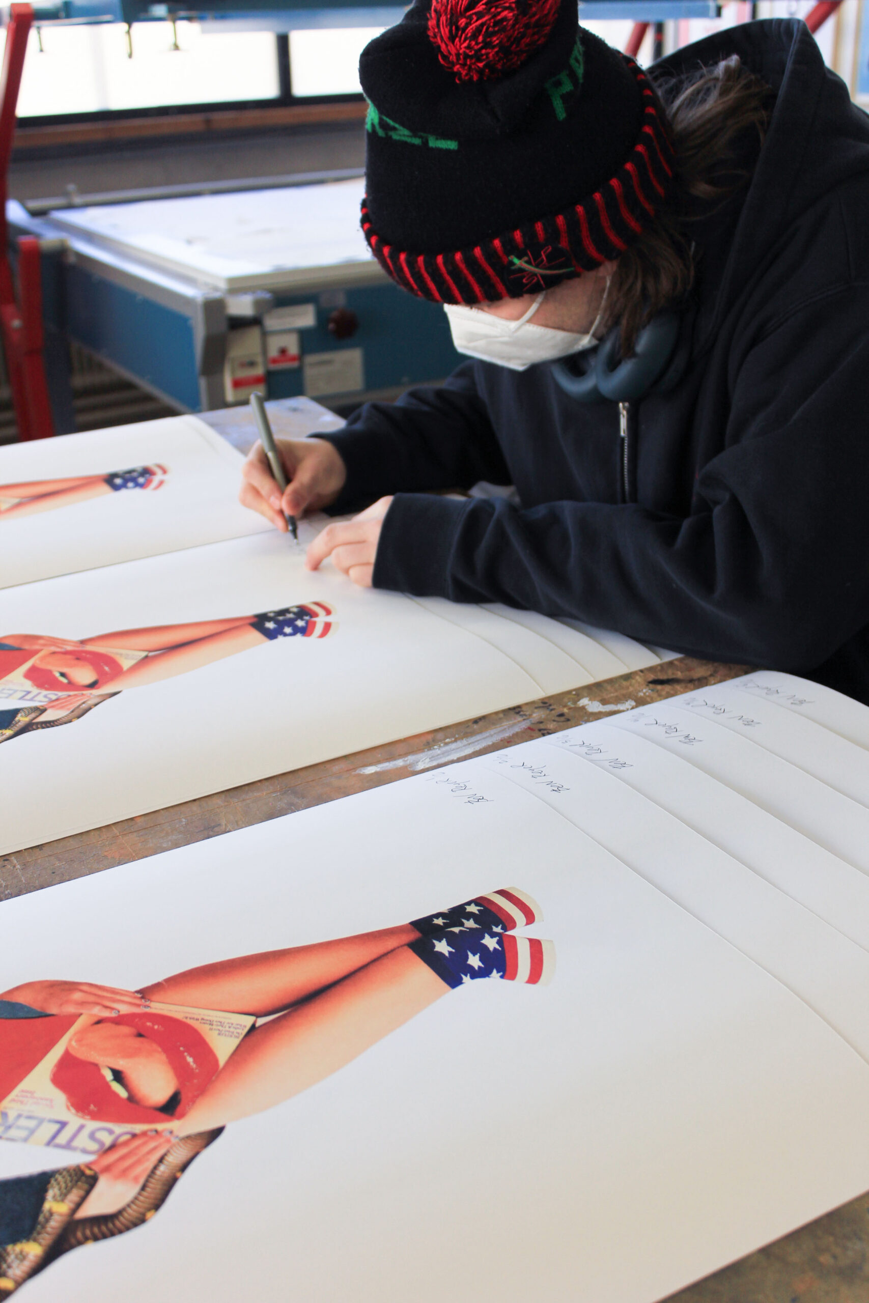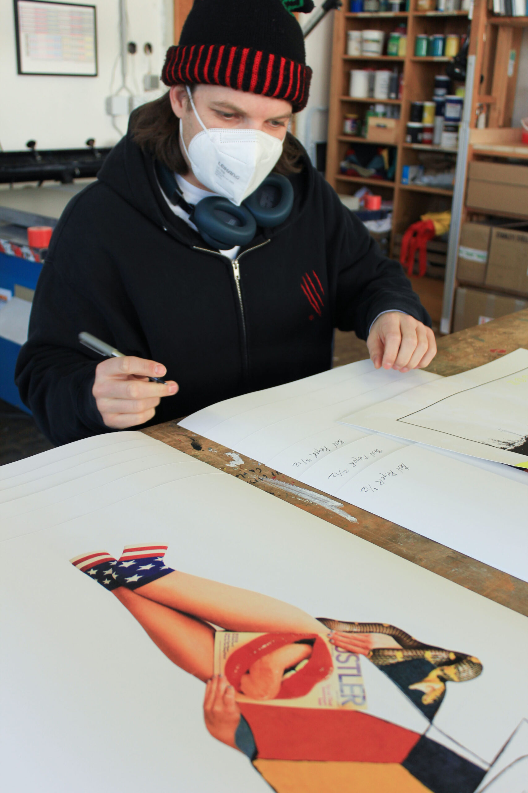 Der Künstler Ben Reyer ist vor allem für seine gesellschaftskritischen Collagen bekannt, welche mit Ausschnitten aus westlichen Populär-, Werbe- und Druckmedien gespickt sind. So kann schon mal ein Engel eine Zigarette umarmen oder der Marlboro Man zu MC Donalds dinieren gehen. Meist ist seine Arbeit mit einer tüchtigen Portion Humor unterfüttert um nicht zu letzt den Genuss von Kritik zu erleichtern. Nicht anders verhält es sich bei seinen Entlehnungen bekannter Logo-Varianten. Die in rot-weiss gehaltene „Kranke Zeiten“ Grafik ist eine geremixte, in neue kontextuale Bedeutungsebenen gehobe Appropriation auf die wieder und wieder kopierte Stilistik der Logos vorherrschender Nachrichtenmedien – Die grafische Ästhetik kann man sich leicht beim Life Magazin oder der deutschen Bild Zeitung in Erinnerung rufen.