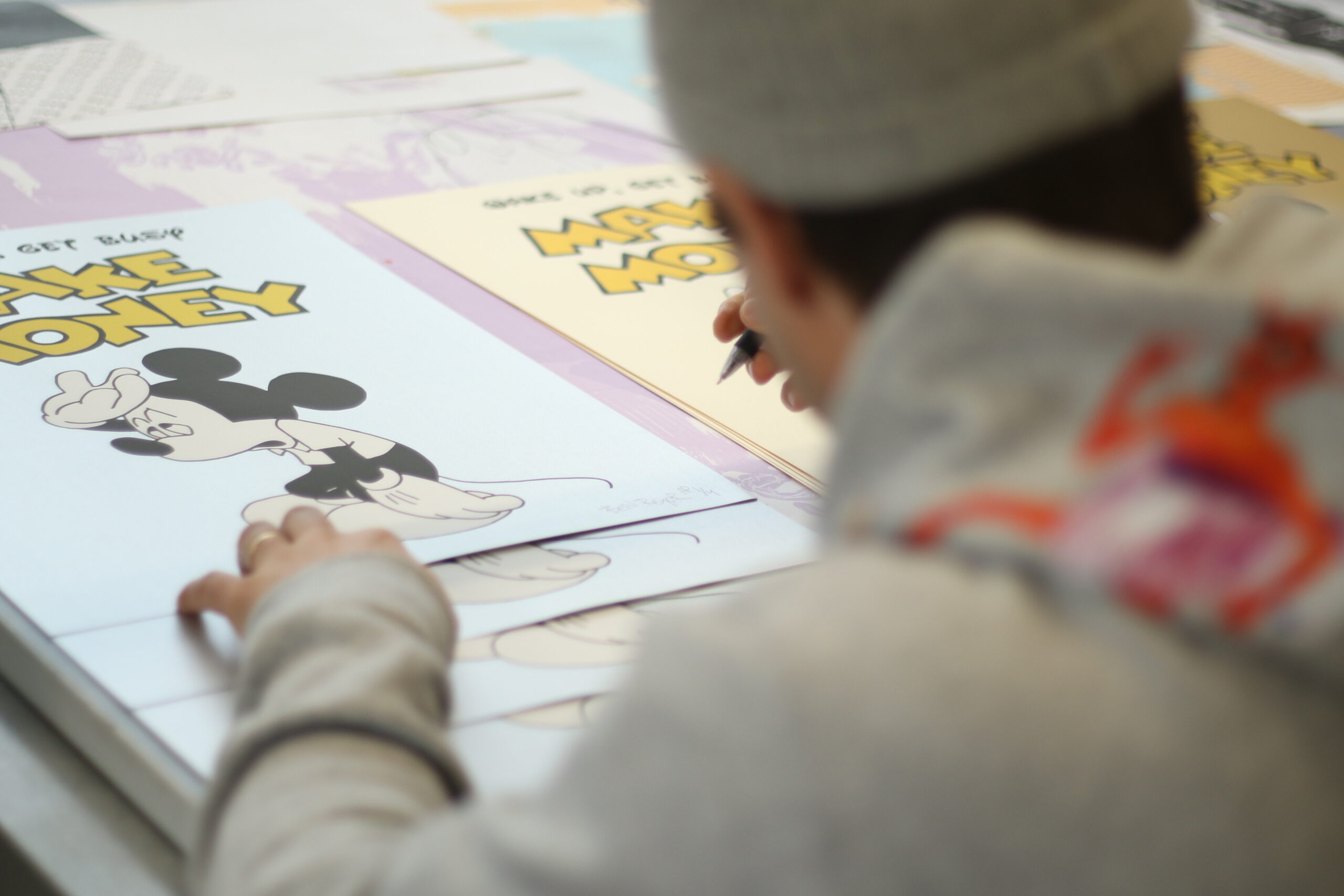 Der Künstler Ben Reyer ist vor allem für seine gesellschaftskritischen Collagen bekannt, welche mit Ausschnitten aus westlichen Populär-, Werbe- und Druckmedien gespickt sind. So kann schon mal ein Engel eine Zigarette umarmen oder der Marlboro Man zu MC Donalds dinieren gehen. Meist ist seine Arbeit mit einer tüchtigen Portion Humor unterfüttert um nicht zu letzt den Genuss von Kritik zu erleichtern. Nicht anders verhält es sich bei seinen Entlehnungen bekannter Logo-Varianten. Die in rot-weiss gehaltene „Kranke Zeiten“ Grafik ist eine geremixte, in neue kontextuale Bedeutungsebenen gehobe Appropriation auf die wieder und wieder kopierte Stilistik der Logos vorherrschender Nachrichtenmedien – Die grafische Ästhetik kann man sich leicht beim Life Magazin oder der deutschen Bild Zeitung in Erinnerung rufen.