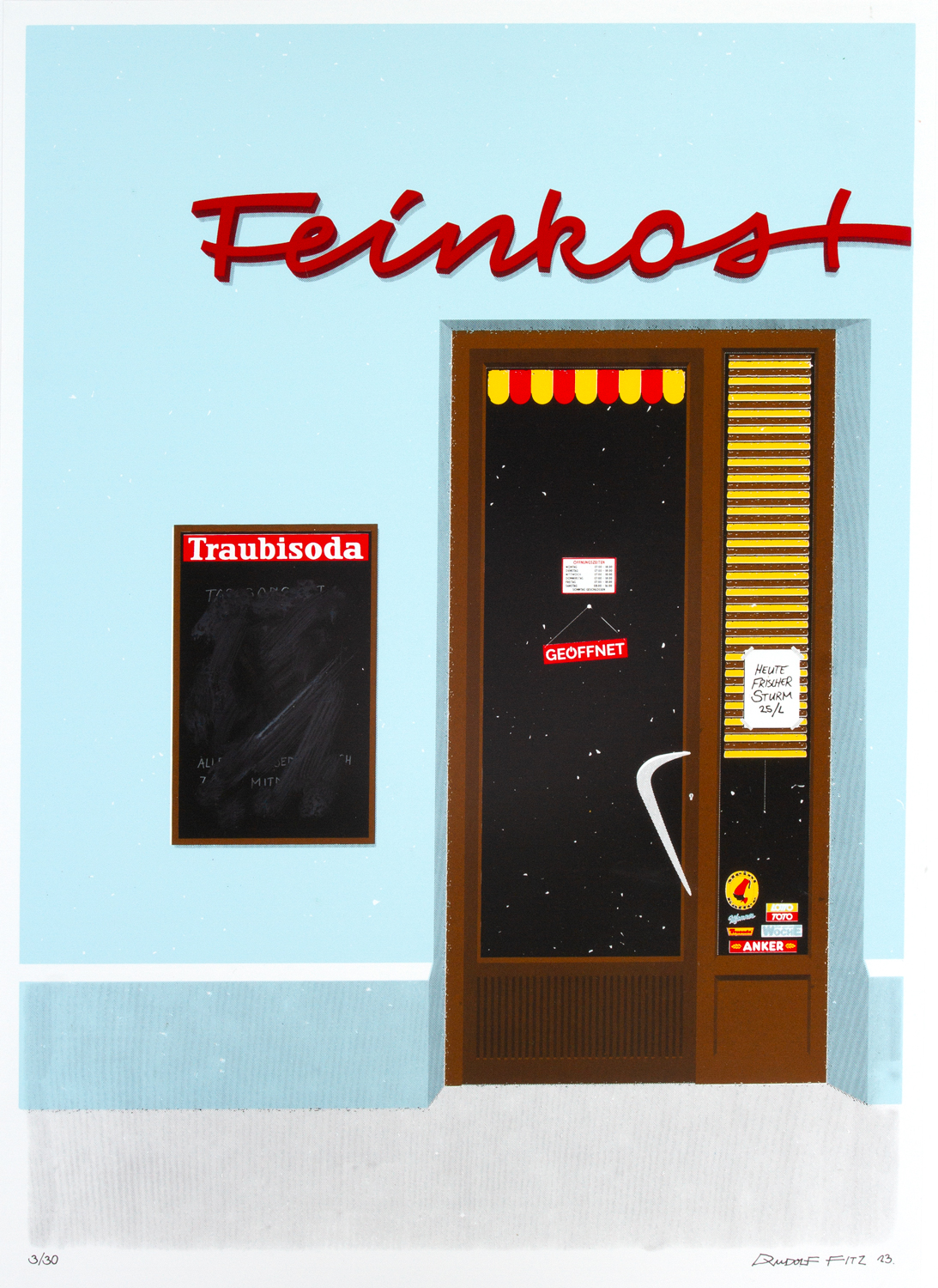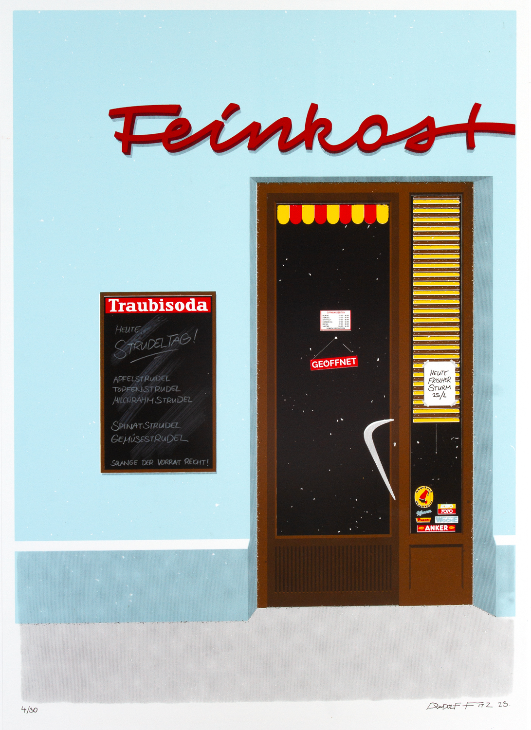 Rudolf Fitz, geb. 1989, lebt und arbeitet als freischaffender Künstler in Wien Fitz schafft in seinen Werken fiktive Realitäten, welche sich in alten Geschäftslokalen, Schriftzügen und verloren gegangenen Elementen der Straßen widerspiegeln. Die BetrachterInnen lässt er in eine andere Zeit eintauchen, weckt deren Kindheitserinnerungen und Sehnsüchte. Einen Bezug zu seiner Heimat Wien ist oftmals zu finden, vielseitige Inspirationen aus aller Welt und die fiktive Ausarbeitung, setzt dieses jedoch nicht voraus. Der Würstelstand prägt das wiener Stadtbild, verbindet jede Gesellschaftsschicht, ist ein nicht wegzudenkendes Paradies für Nachtschwärmer, Promill-Philosophen und verlorene Seelen. Ein Motiv welches Fitz gerne zitiert, ein Sujet, das viel von dem widerspiegelt, was den Charme der Stadt ausmacht. Sein Fokus liegt auf Ölmalerei, neben klein- & großformatigen Leinwandarbeiten entstehen auch Werke auf Papier. Zusätzlich erscheinen in regelmäßigen Abständen Siebdrucke & Fineartprints in limitierten Auflagen. Werke von Fitz wurden bereits in zahlreichen Ausstellungen, Messen und Charity Auktionen, national und international, gezeigt.