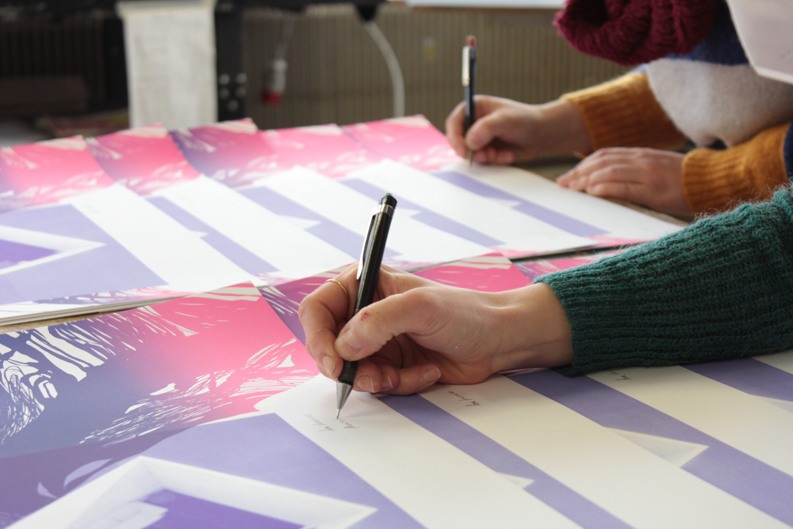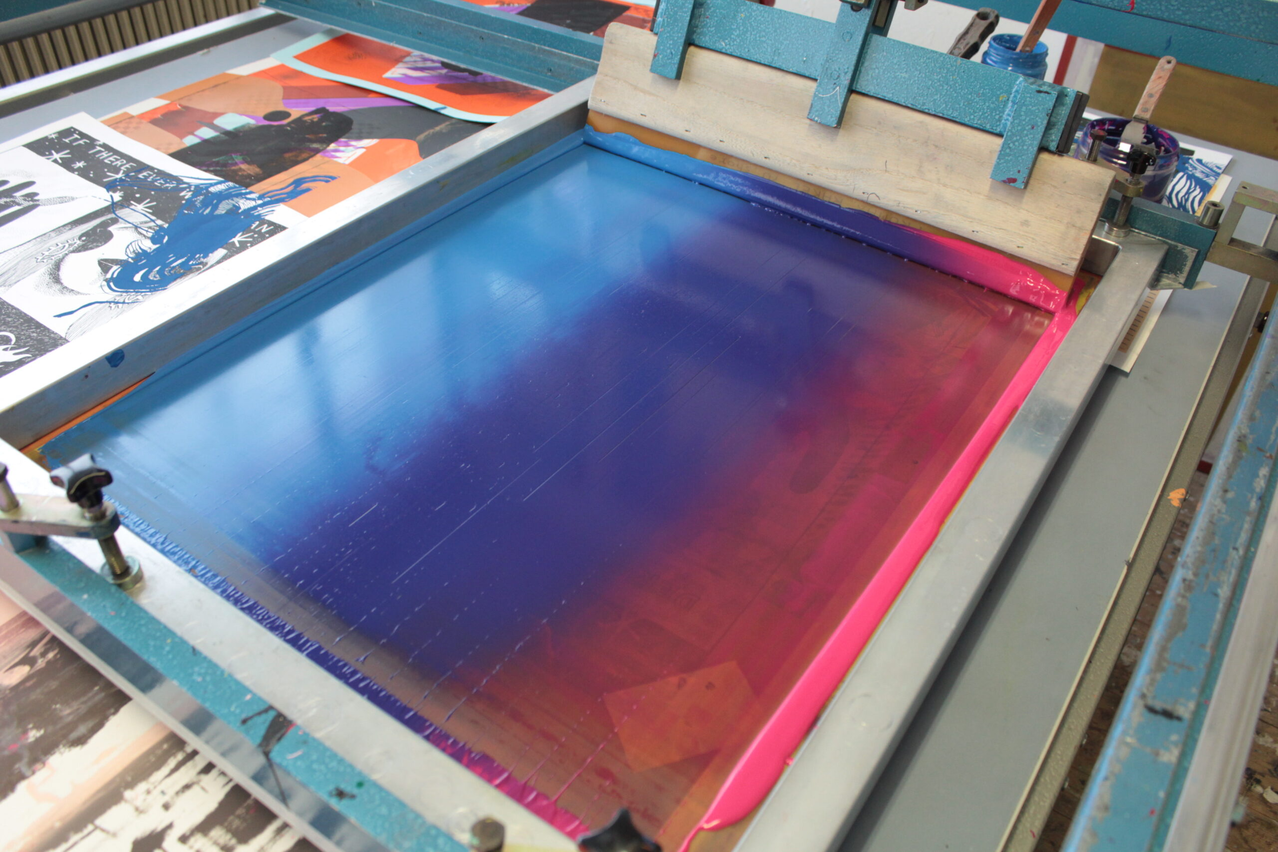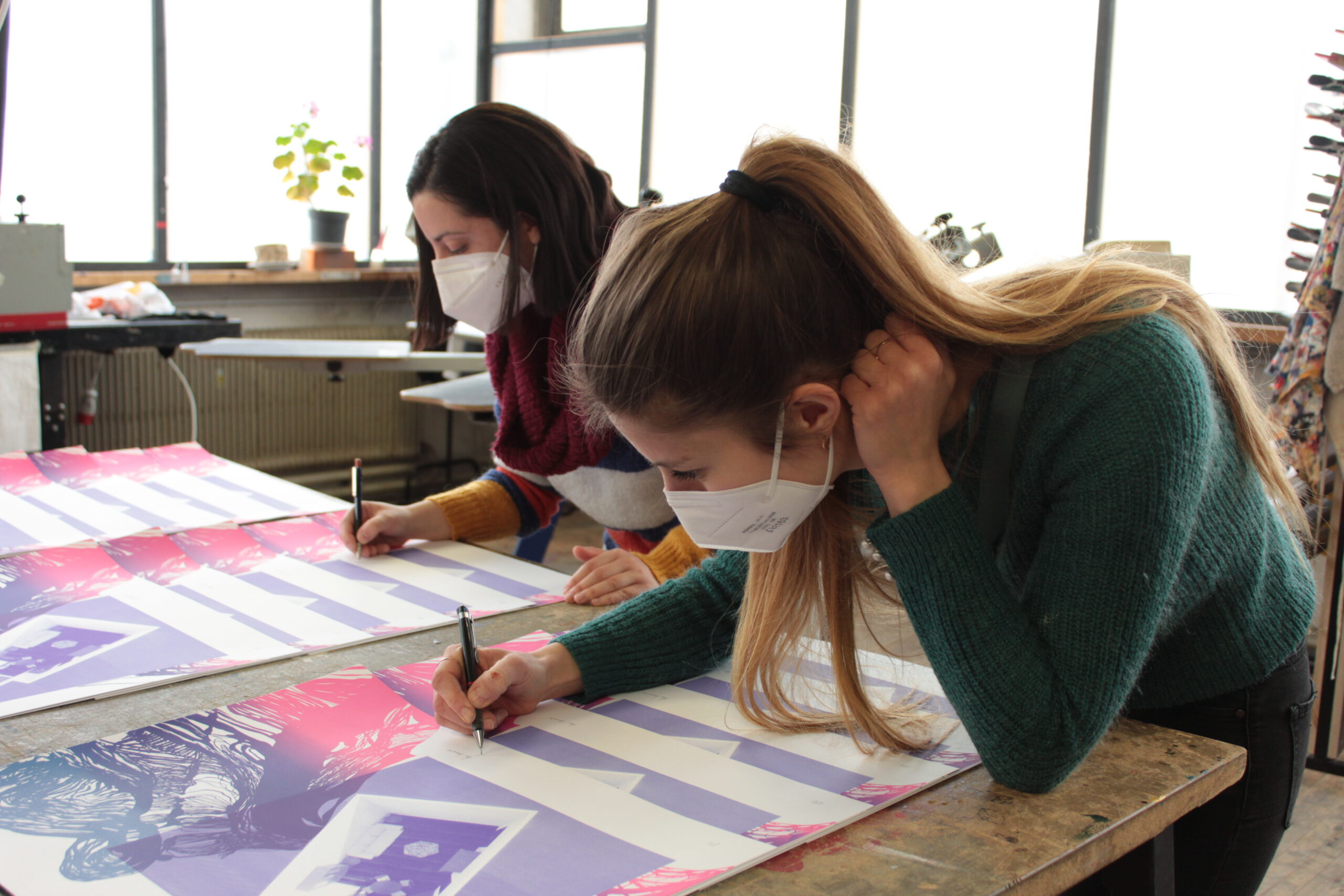 In der hauseigenen Siebdruckwerkstatt Printerhof produzieren wir Druckauflagen mit ausgewählten Künstler*innen. Durch die Begleitung von Siebdruckprojekten können wir demnach in Kooperation mit Kunstschaffenden über unsere vermittelnde Funktion hinauswachsen.