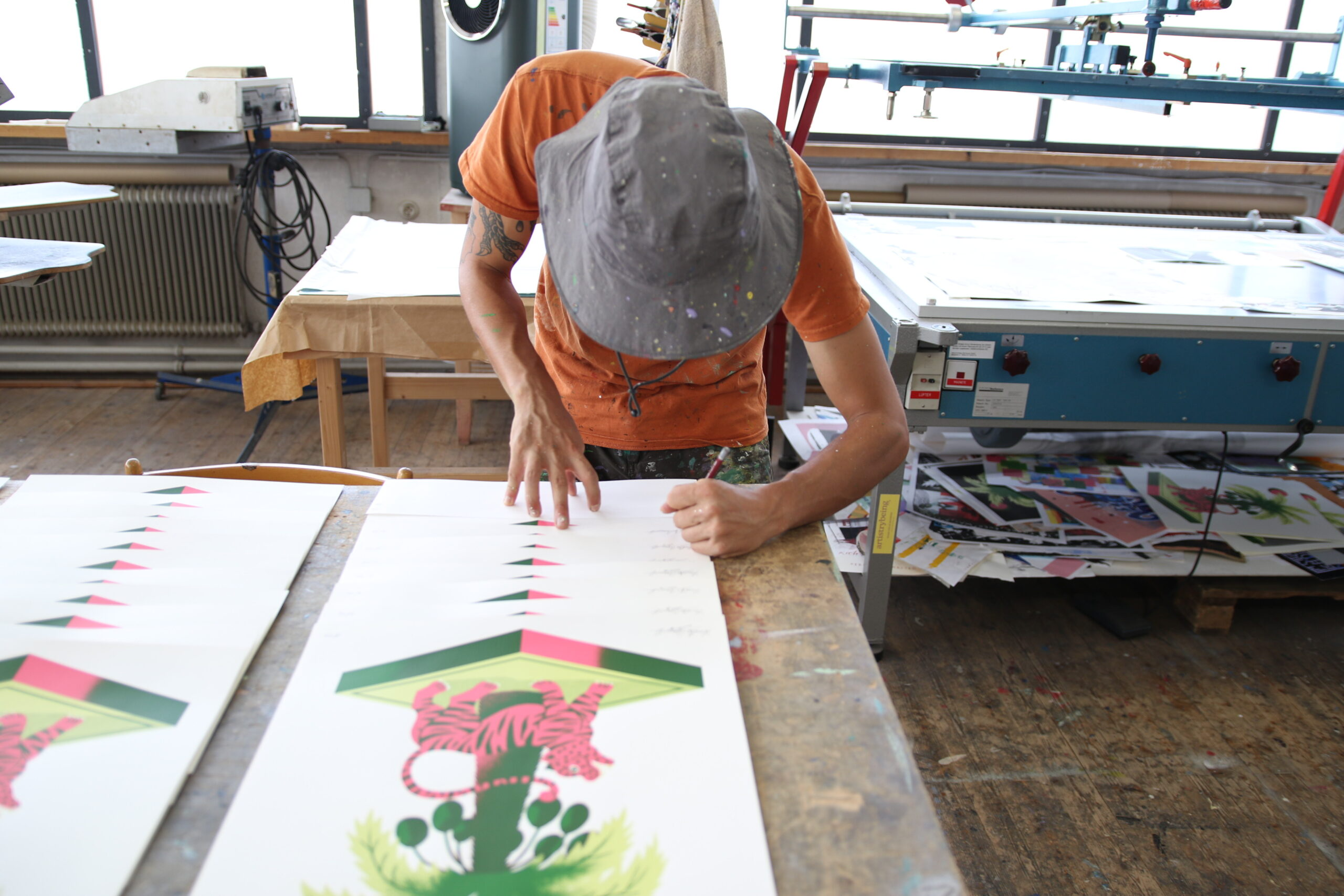In der hauseigenen Siebdruckwerkstatt Printerhof produzieren wir Druckauflagen mit ausgewählten Künstler*innen. Durch die Begleitung von Siebdruckprojekten können wir demnach in Kooperation mit Kunstschaffenden über unsere vermittelnde Funktion hinauswachsen.