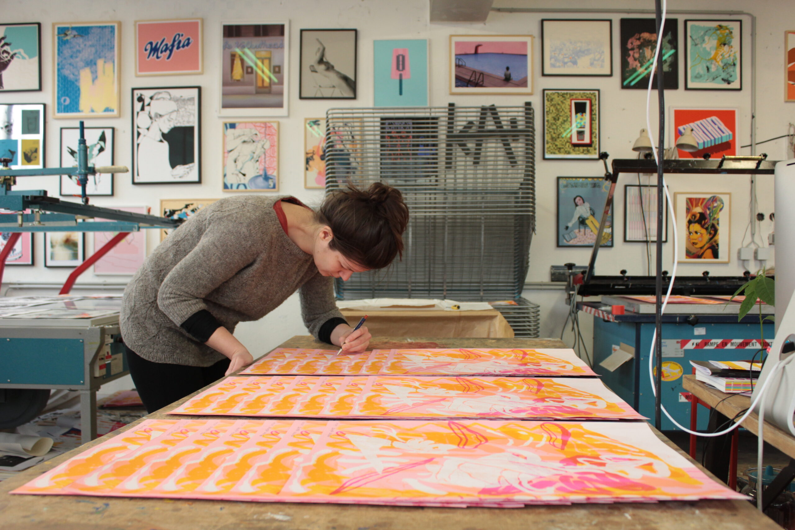 In der hauseigenen Siebdruckwerkstatt Printerhof produzieren wir Druckauflagen mit ausgewählten Künstler*innen. Durch die Begleitung von Siebdruckprojekten können wir demnach in Kooperation mit Kunstschaffenden über unsere vermittelnde Funktion hinauswachsen.