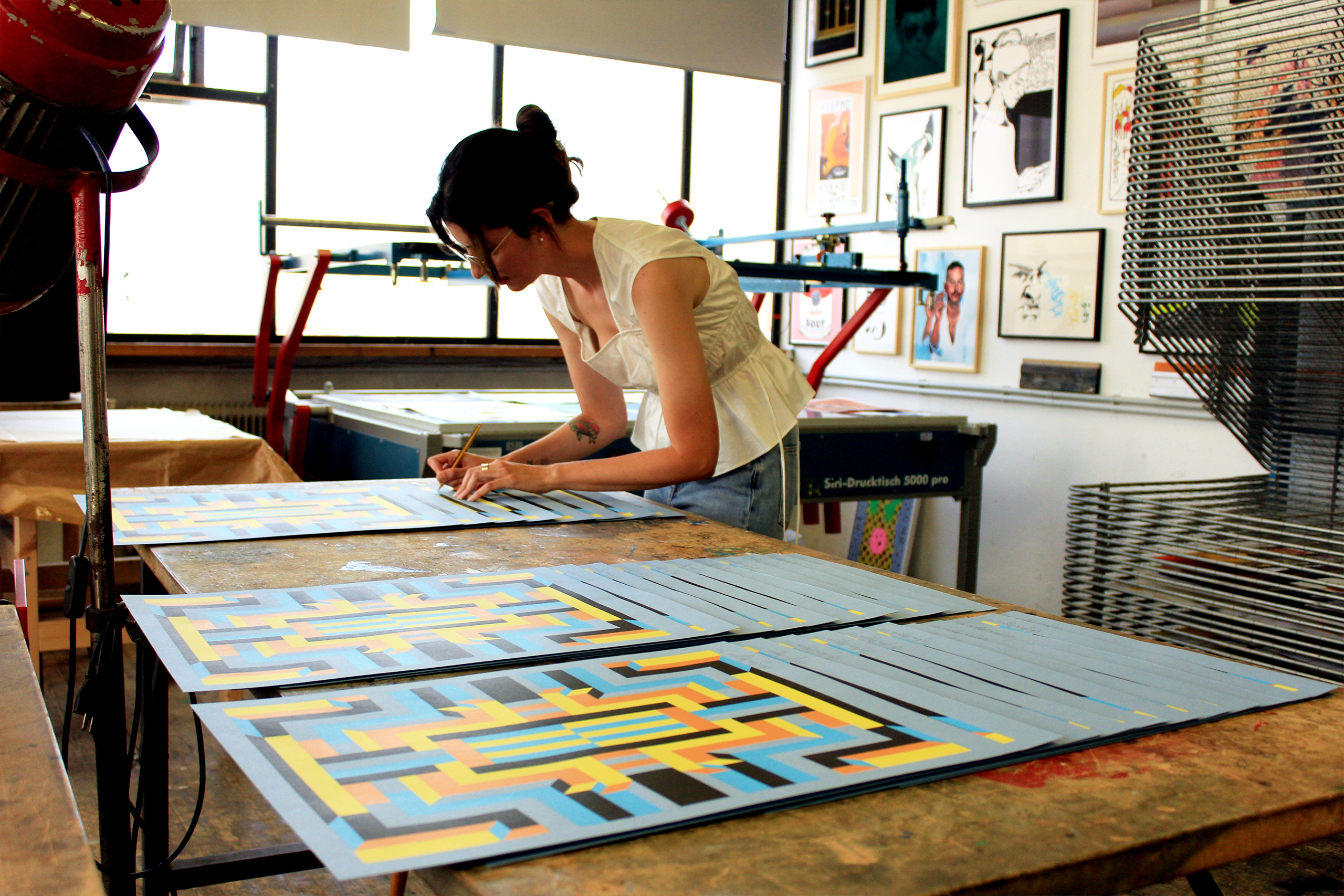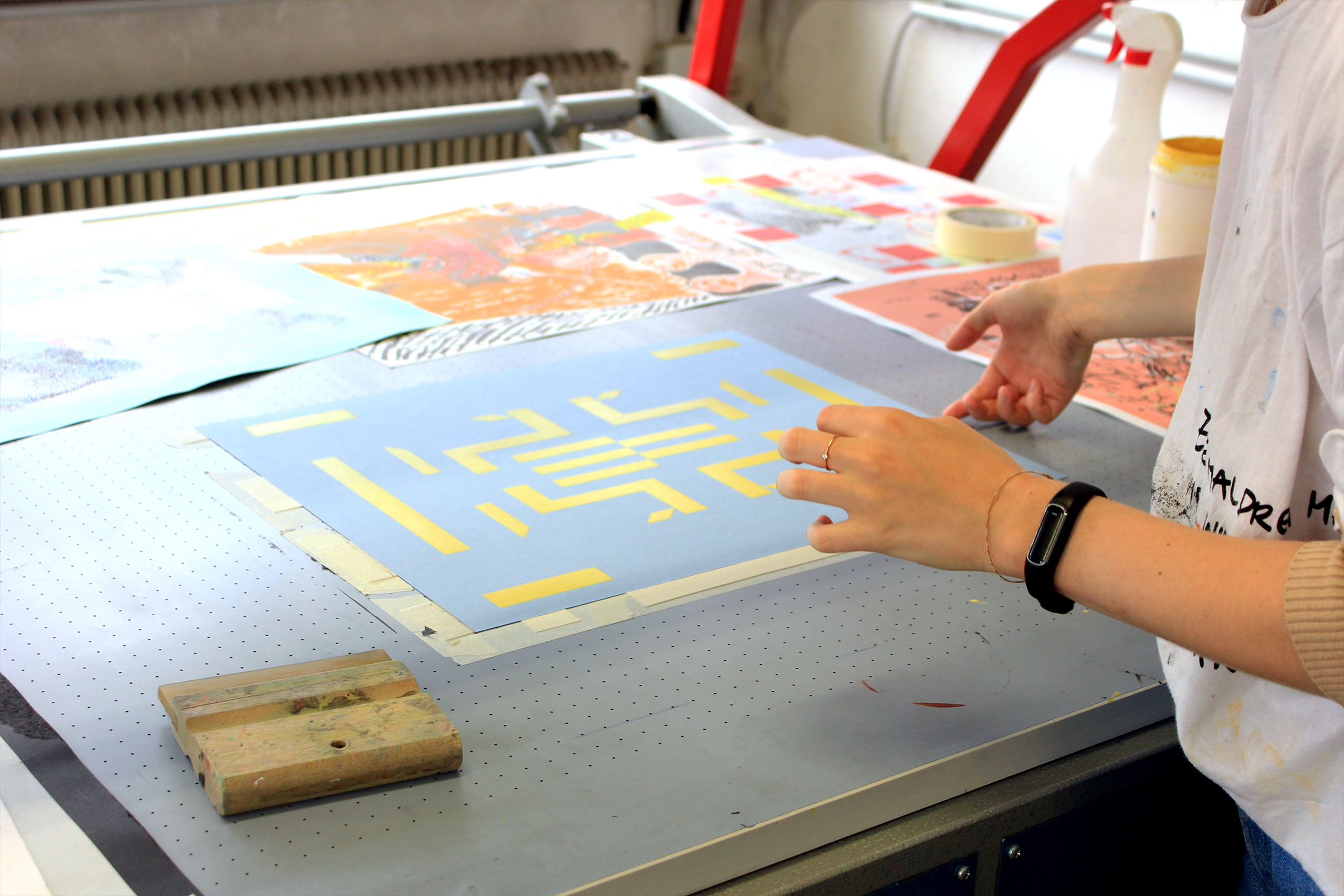 In der hauseigenen Siebdruckwerkstatt Printerhof produzieren wir Druckauflagen mit ausgewählten Künstler*innen. Durch die Begleitung von Siebdruckprojekten können wir demnach in Kooperation mit Kunstschaffenden über unsere vermittelnde Funktion hinauswachsen.