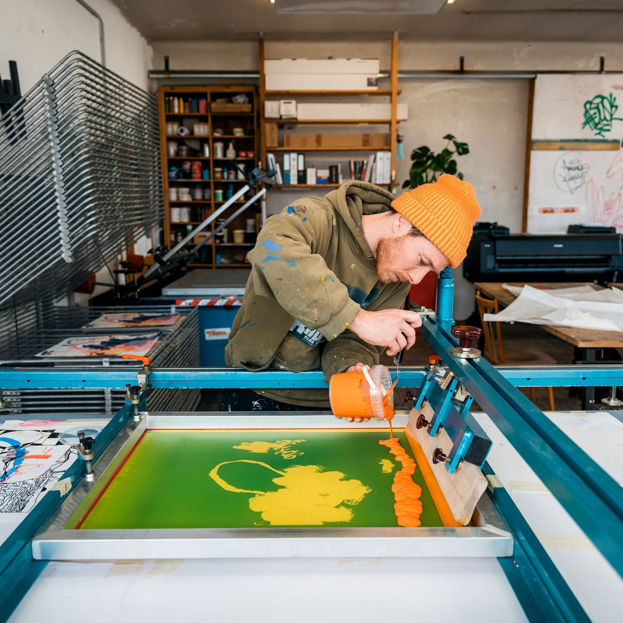In der hauseigenen Siebdruckwerkstatt Printerhof produzieren wir Druckauflagen mit ausgewählten Künstler*innen. Durch die Begleitung von Siebdruckprojekten können wir demnach in Kooperation mit Kunstschaffenden über unsere vermittelnde Funktion hinauswachsen.