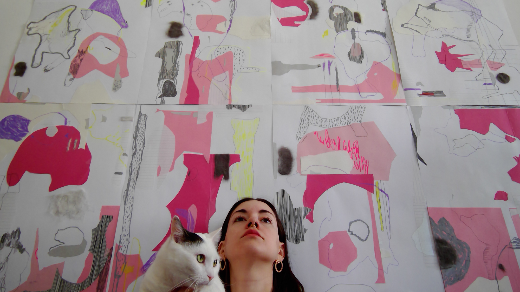 Katharina Diezl wurde 1988 in Wien geboren. Nach ihrem Abschluss eines Kollegs sowie des Modestudiums an der Kunstuniversität Linz/Wien Hetzendorf, begann die Künstlerin 2016 ihr Studium an der Akademie der bildenden Künste Wien in der Grafikklasse, zunächst unter Veronika Dirnhofer, ab 2017 unter der Leitung Christian Schwarzwalds und schloss im Juni 2022 mit Auszeichnung ab. In ihrer künstlerischen Arbeit variieren Technik und Materialität ständig. Was gleich bleibt ist der intuitive Strich und eine konzeptionelle Ausarbeitung von Themen ihres unmittelbaren Umfelds. Als Basis für die meist seriellen Arbeiten dient ein umfangreicher, laufend wachsender Fotografie-, Skizzenbuch- und Materialfundus. Erinnerungen, Textilien, Papier, Haare (meistens von Katzen, manchmal die eigenen), Fotos, Farben, Sieb- und Digitaldrucke wachsen zu Collagen zusammen und erzählen eine thematisch spezifische aber dennoch abstrakte Geschichte. Bildträger und Format alternieren hierbei von Serie zu Serie. KATER D. lebt und arbeitet in Wien.