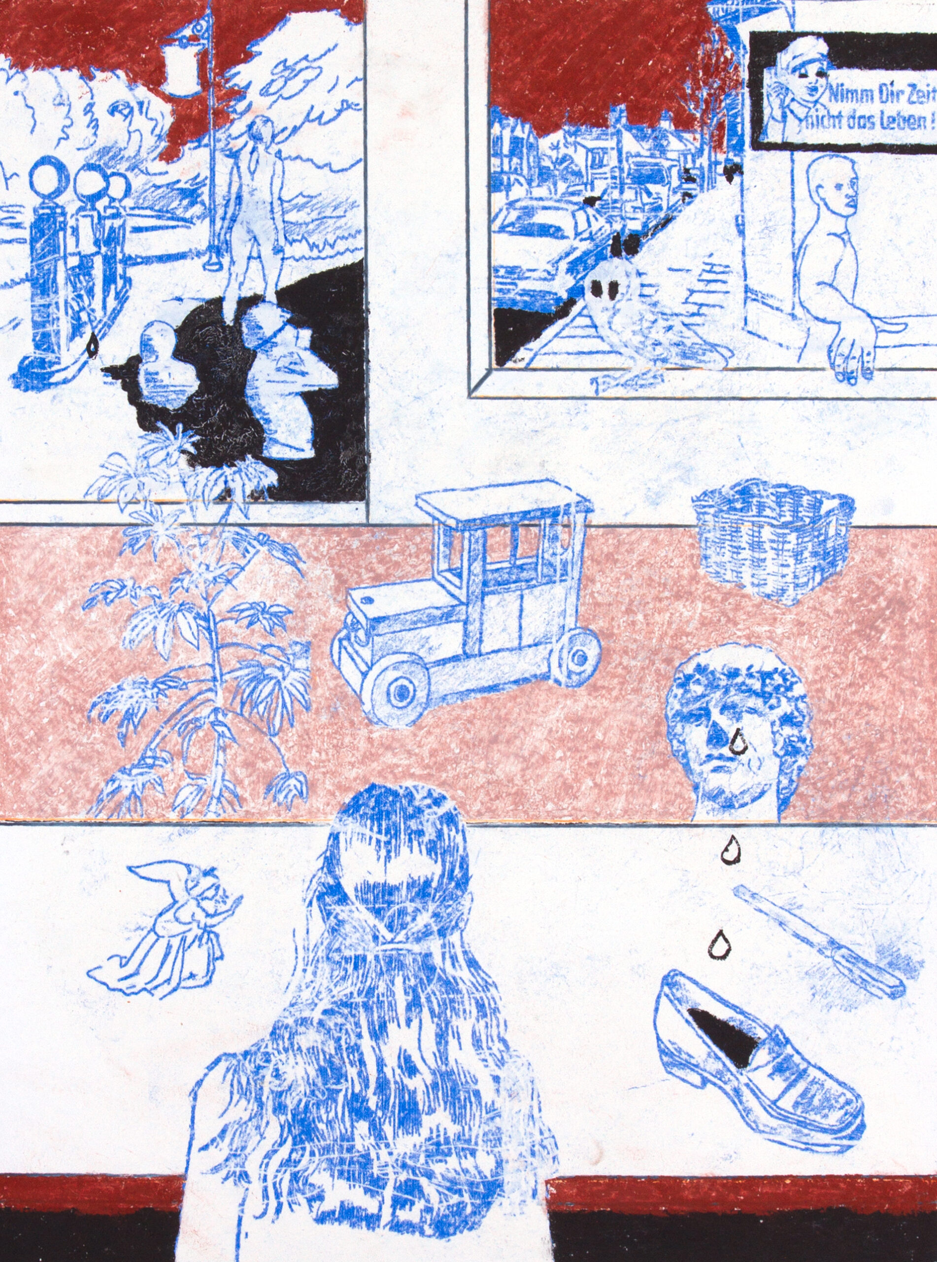 Der Künstler aus Wien arbeitet hauptsächlich in den Bereichen Zeichnung, Malerei, Skulptur und Installation. Sein Hauptinteresse hat er in Bildern und Vorstellungskraft gefunden. Im engeren Sinne ist unter Imagination mit Phantasie vor allem die Fähigkeit gemeint, innere Bilder und damit eine „innere Welt“ zu schaffen. Mit der Darstellungsform von Stills oder Comics wie der „Sequential Art“ gibt er die Vollendung der Bilder in die Hände, Gehirne und Herzen des Betrachters und appelliert an seine Innenwelt. Bilder haben etwas zu erzählen, und sind ein fester Bestandteil unserer Sprachen und Kulturen. Die Vorstellungskraft ist Teil unserer Identität. In seiner Arbeit kann man reflektierenden Formen begegnen, die die Realität veranschaulichen und sich dabei auf symbolische Objekte und Zeichen konzentrieren, um unsere Gewohnheiten, Vorlieben, kulturellen Verhaltensweisen oder Emotionen wie Ängste oder Liebe zu diskutieren.
