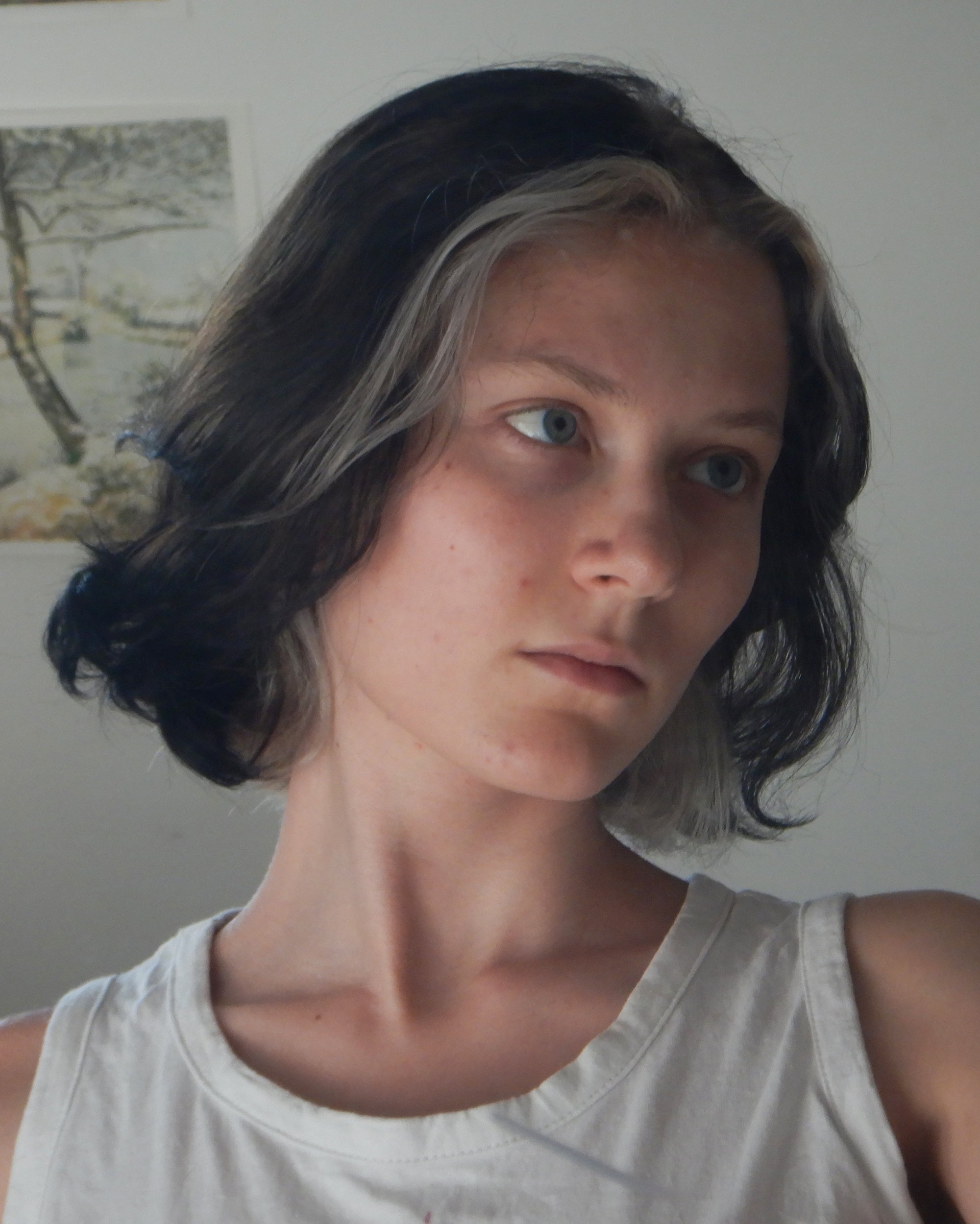 Ruth, aka Gruselbabsi, geb. 2004, lebt & arbeitet in Wien Ruths Arbeit ist mit ausdrucksstarken Zeichnungen, sowie der Erforschung verschiedenster Drucktechniken, fest in der Grafik verankert. Zentral für ihr künstlerisches Schaffen ist jedoch ihre Liebe zur Malerei, in der ihre prägnanten Motive mit einem besonderen Gefühl für Farbe zusammenfinden. Durch ihre malerische, aber figurative Darstellungsart werden Gefühle greifbar und das Phantastische absolut ins Diesseits hereingenommen. In ihren Arbeiten bedient sie sich neben traditionellen künstlerischen Medien auch gerne experimenteller Techniken und Elementen der Textilkunst.